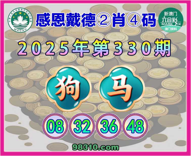 330期:『感恩戴德』 ②肖④码【狗马】【08.32.36.48】开:马36准验证上榜