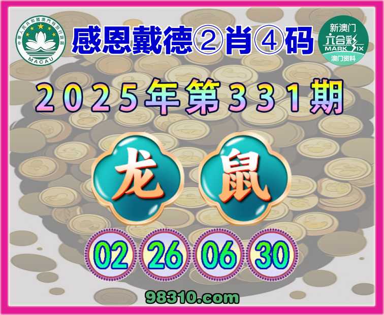 331期:『感恩戴德』 ②肖④码【龙鼠】【02.26.06.30】开:龙26准验证上榜
