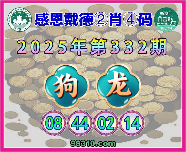 332期:『感恩戴德』 ②肖④码【狗龙】【08.44.02.14】开:龙26准验证上榜