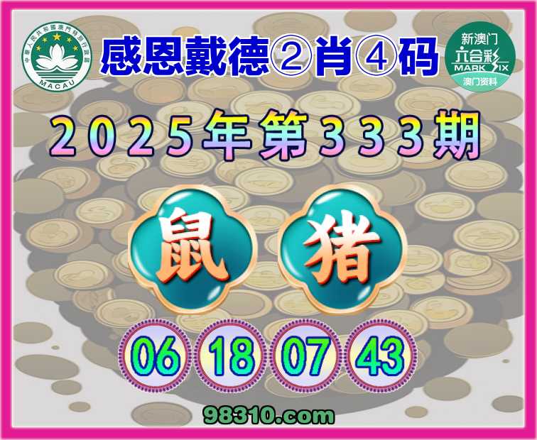 333期:『感恩戴德』 ②肖④码【鼠猪】【06.18.07.43】开:鼠06准验证上榜