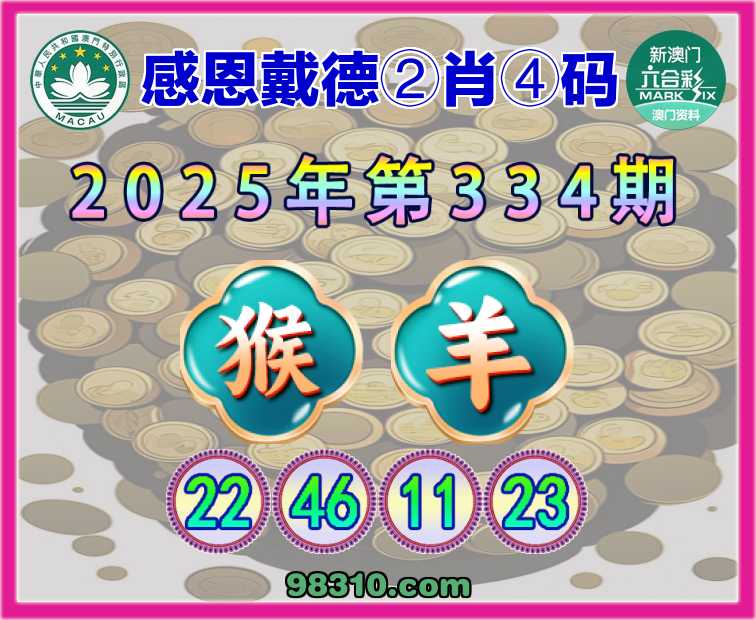 334期:『感恩戴德』 ②肖④码【猴羊】【22.46.11.23】开:猴46准验证上榜