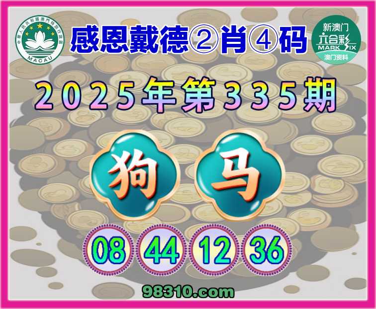 335期:『感恩戴德』 ②肖④码【狗马】【08.44.12.36】开:狗44准验证上榜
