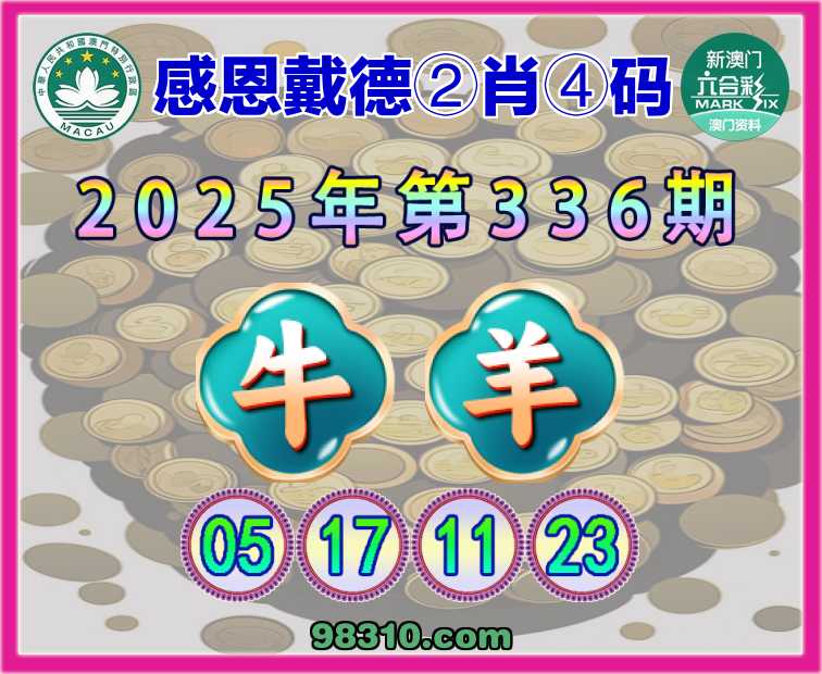 336期:『感恩戴德』 ②肖④码【牛羊】【05.17.11.23】开:牛17准验证上榜