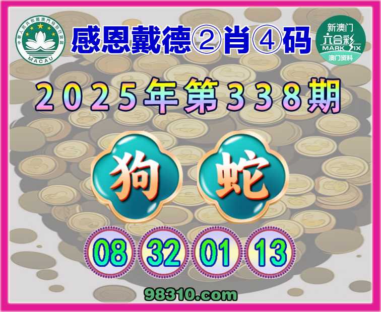 338期:『感恩戴德』 ②肖④码【狗蛇】【08.32.01.13】开:狗08准验证上榜