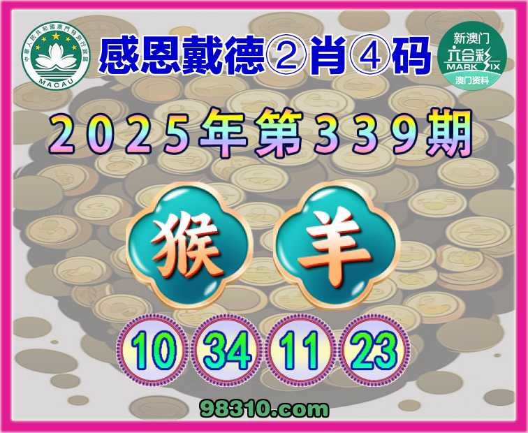 339期:『感恩戴德』 ②肖④码【猴羊】【10.34.11.23】开:马48错