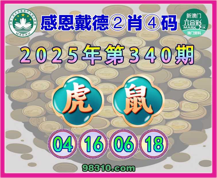 340期:『感恩戴德』 ②肖④码【虎鼠】【04.16.06.18】开:虎16准验证上榜
