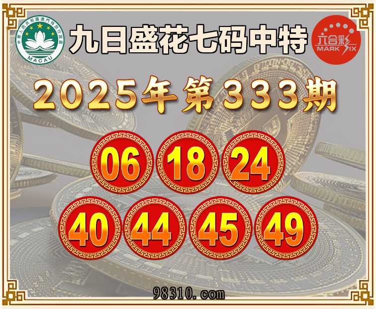 333期:『九日盛花』 七码中特【06.18.24.40.44.45.49】开:06准验证上榜