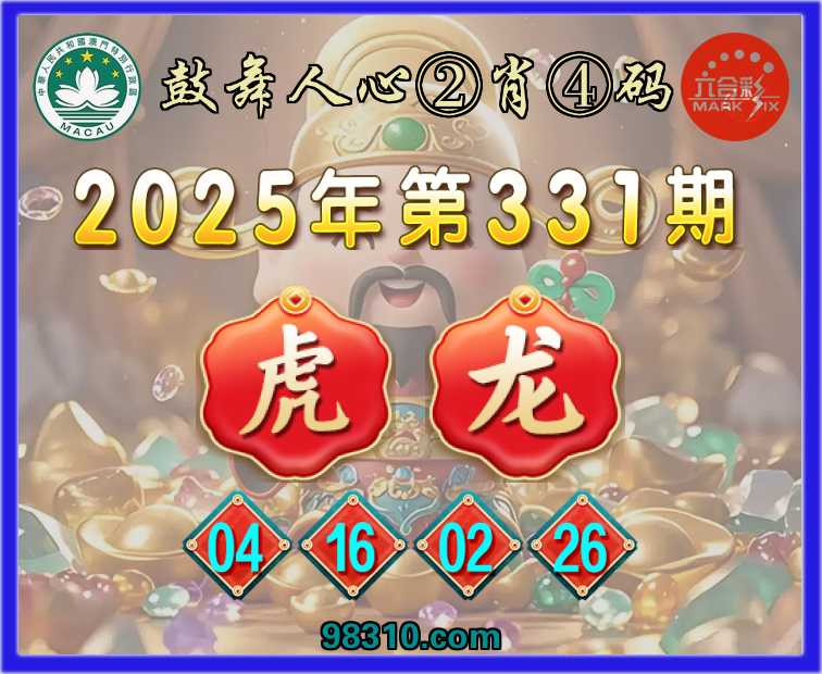 331期:《鼓舞人心》 ②肖④码【虎龙】【04.16.02.26】开:龙26准验证上榜