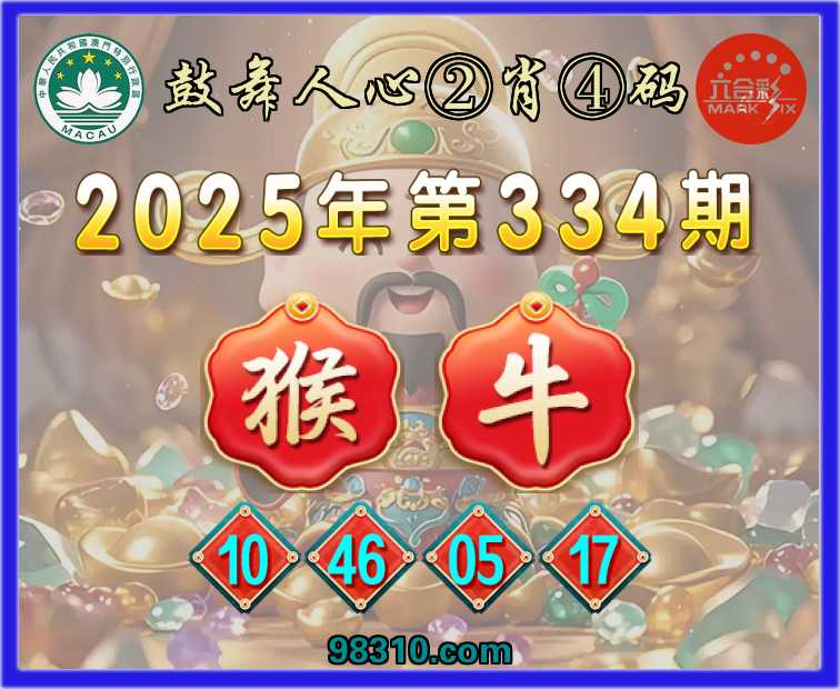 334期:《鼓舞人心》 ②肖④码【猴牛】【10.46.05.17】开:猴46准验证上榜
