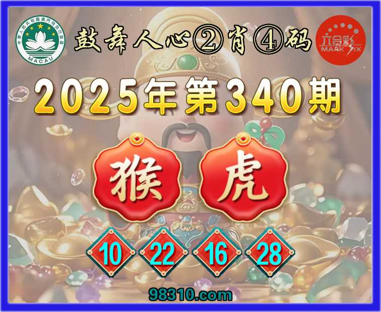 340期:《鼓舞人心》 ②肖④码【猴虎】【10.22.16.28】开:虎16准验证上榜
