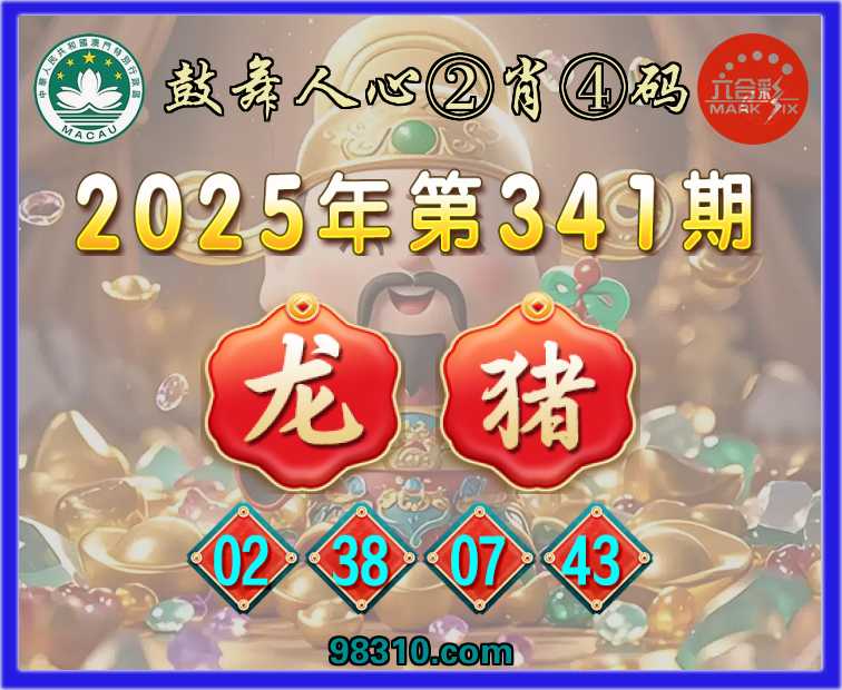 341期:《鼓舞人心》 ②肖④码【龙猪】【02.38.07.43】开:鼠06错