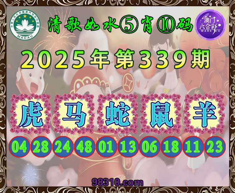 339期:【清歌如水】 ⑤肖⑩码【虎马蛇鼠羊】开:马48准验证上榜