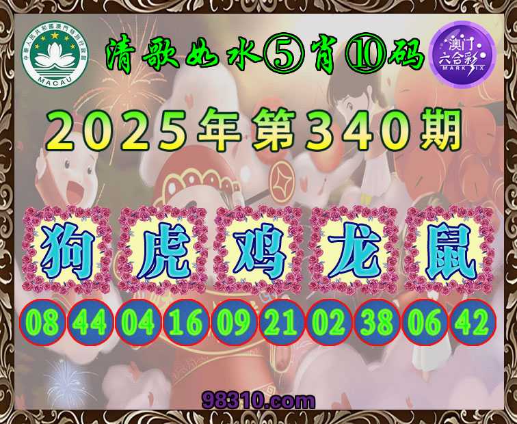 340期:【清歌如水】 ⑤肖⑩码【狗虎鸡龙鼠】开:虎16准验证上榜