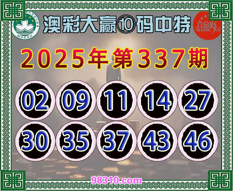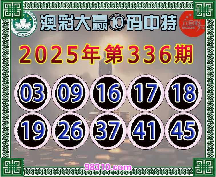 337期:〖澳彩大赢〗 ⑩码中特开:09准