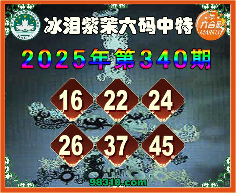340期: 冰泪紫茉 六码中特【16.22.24.26.37.45】开:16准