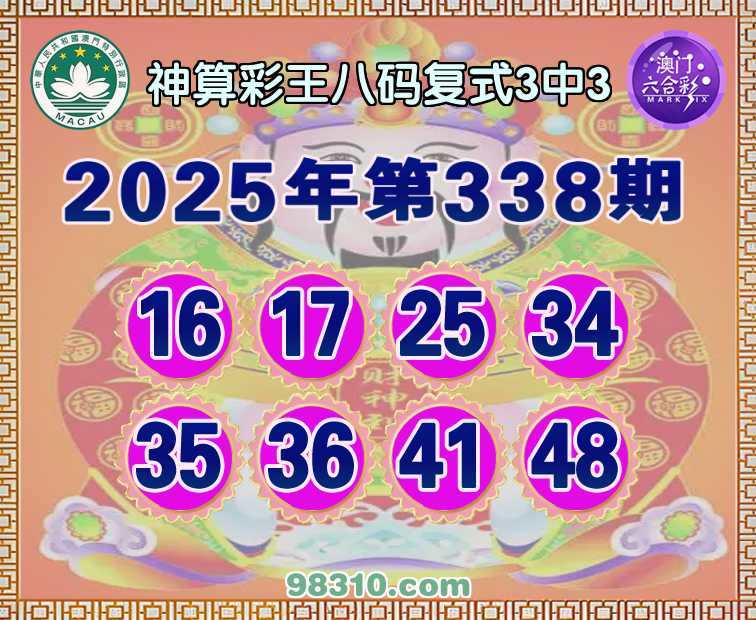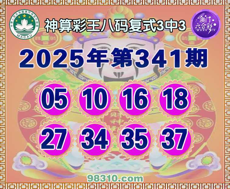 341期:【神算彩王】 八码复式3中3