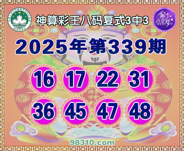 339期:【神算彩王】 八码复式3中3