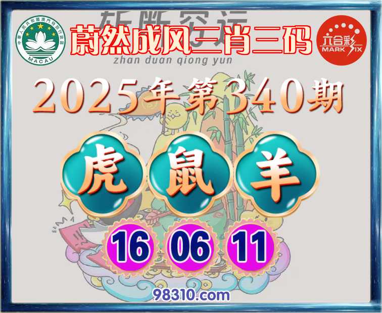 340期:《蔚然成风》 三肖三码【虎鼠羊】【16.06.11】开:虎16准